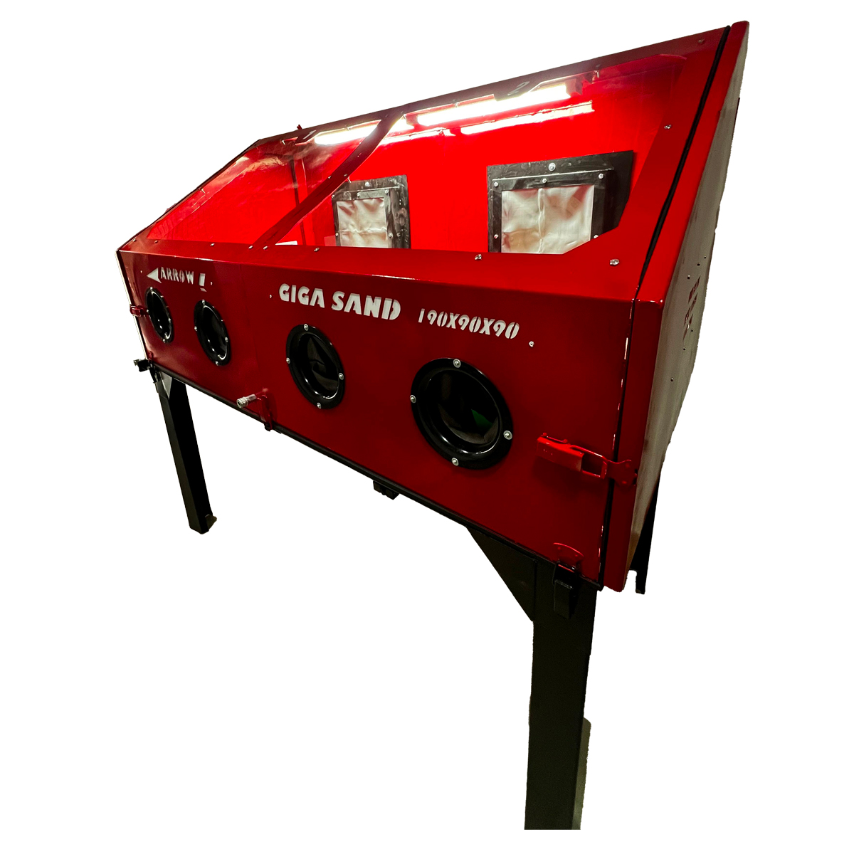 La Cabina Sandblasting GIGA es una solución industrial de gran formato diseñada para el arenado eficiente de piezas voluminosas como chasis de motocicleta y estructuras metálicas. Sus amplias dimensiones permiten trabajar con comodidad, mientras que su sistema de doble turbina trasera con filtro tipo mesh garantiza una excelente contención del abrasivo y un entorno de trabajo más limpio. Incorpora iluminación impermeable IP65 para una visibilidad óptima y puertas abatibles laterales que facilitan el acceso y la manipulación de piezas grandes, combinando capacidad, eficiencia y seguridad en un solo equipo.